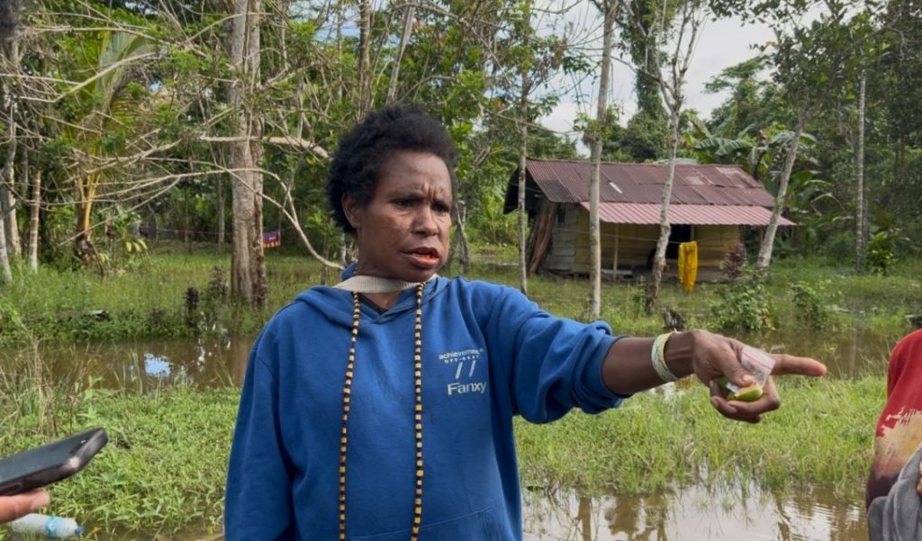 “Air naik begini otomatis kita punya tanaman mati semua. Petatas, singkong, ubi-ubi ini tidak ada panen lagi,” keluh Yapo Murib, warga Kelurahan Kamoro Jaya, Selasa (19/8/2025) siang, sambil menunjukkan kondisi kebunnya.