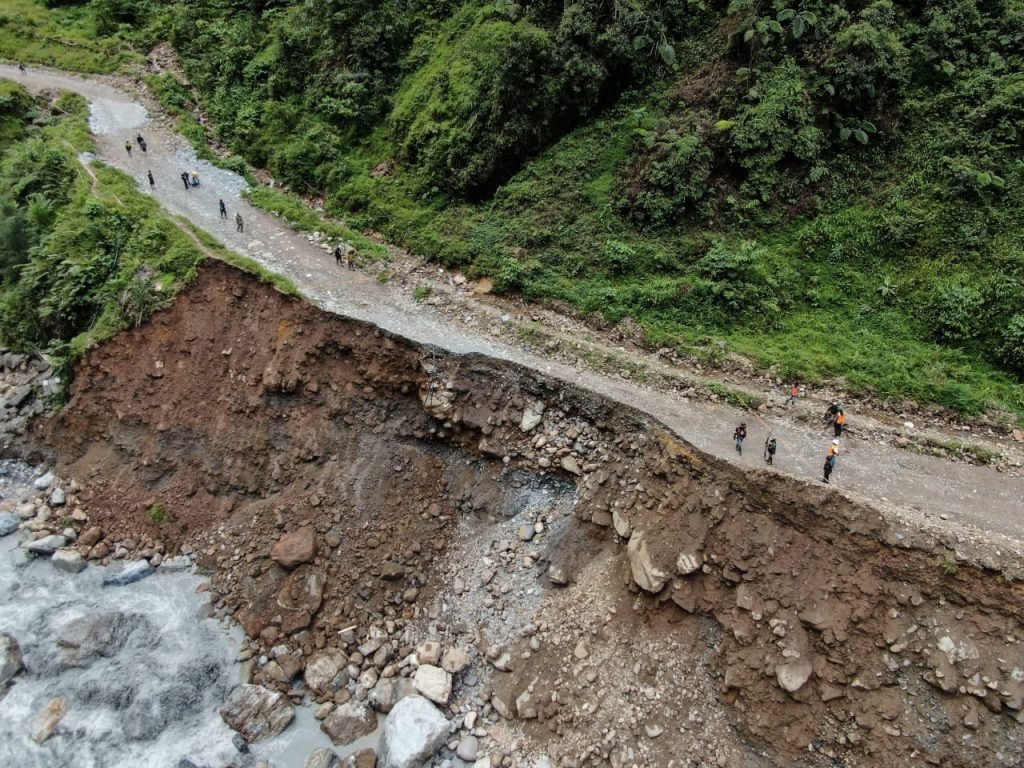 Debit air sungai akibat curah hujan tinggi menyebabkan rusaknya tanggul pinggir sungai yang mengganggu akses jalan utama dari Tembagapura menuju kampung Waa Banti. (Foto: Istimewa/Corporate Communication PTFI)