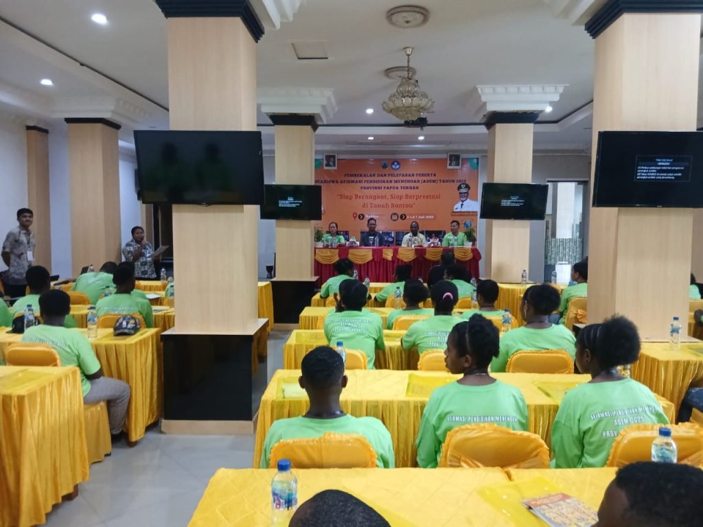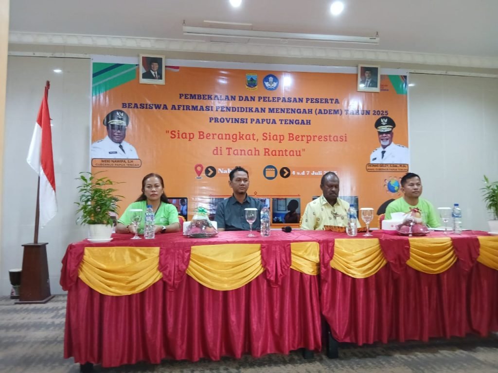 NABIRE — Pemerintah Provinsi Papua Tengah melalui Dinas Pendidikan dan Kebudayaan secara resmi membuka kegiatan Pembekalan dan Pelepasan Calon Peserta Beasiswa Afirmasi Pendidikan Menengah (ADEM) Tahun 2025.