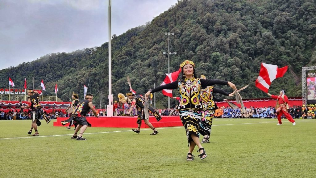 Divisi Manpower Management berkolaborasi bersama Paguyuban Keluarga Kalimantan, membawakan Tari Burung Enggang dan Tari Perang khas suku Dayak di Tembagapura, Sabtu (17/8/2024). (Foto: Istimewa/Corporate Communication PTFI)