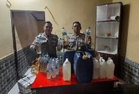 Polsek Kawasan Pelabuhan Poumako Timika mengamankan ratusan liter miras lokal di Pelabuhan Laut Poumako, Kabupaten Mimika, Papua Tengah.